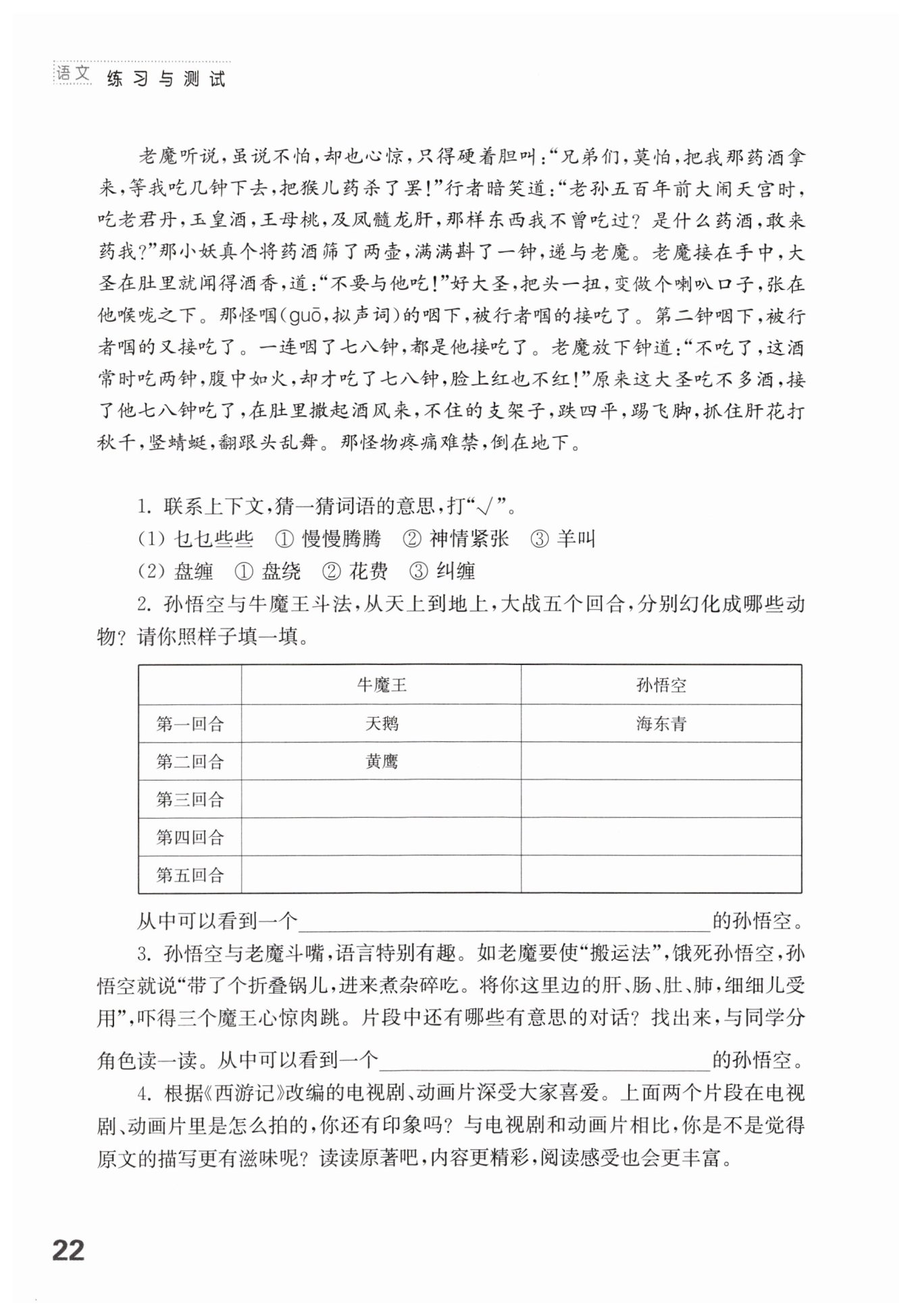 ④由“魔王慌了手腳,又變作一只金錢花斑的大豹,要傷餓虎”“行者見了,迎著風(fēng),把頭一幌,又變作一只金眼狻猊”可知,第五回合:牛魔王變作大豹,孫悟空變作狻猊。