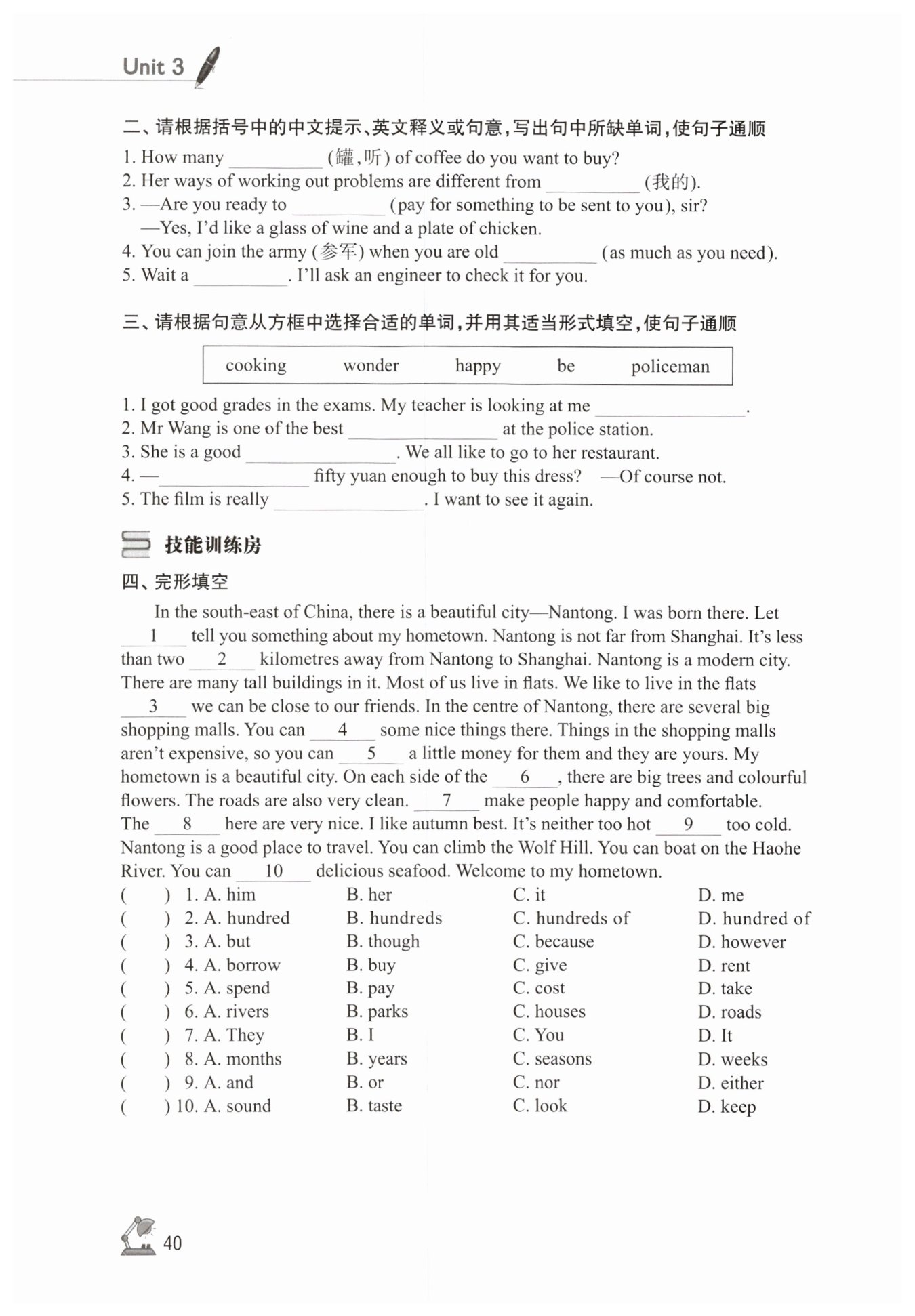 此空的后文有介詞for,故此處為pay… for:為……付錢。固定短語,故選B。