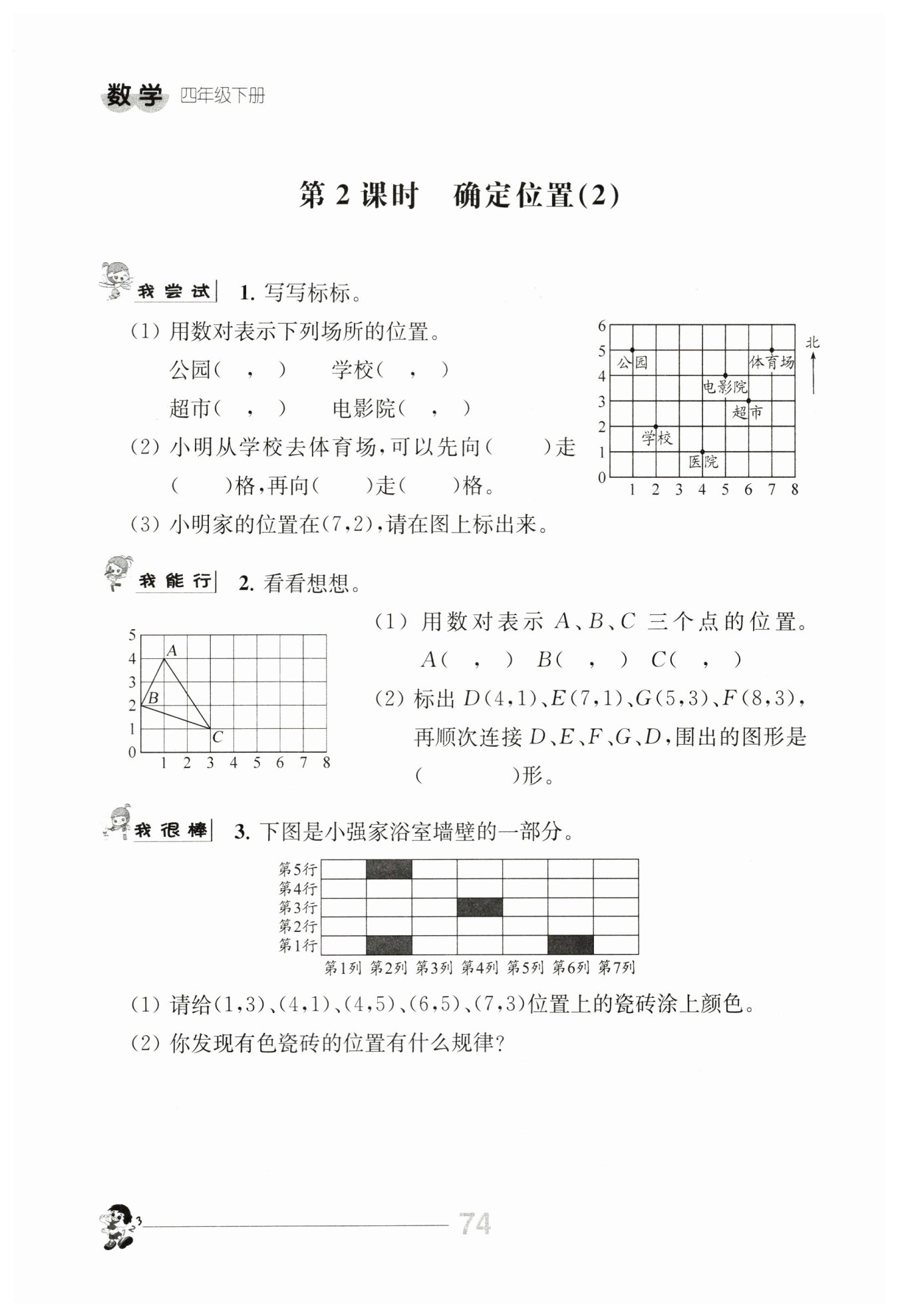 答:我發(fā)現(xiàn)花色瓷磚組成了一個軸對稱圖形,它關(guān)于第4列成軸對稱。