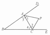∴?$∠1= \frac 12∠CAD,$?同理?$∠2= \frac 12∠ACE$?