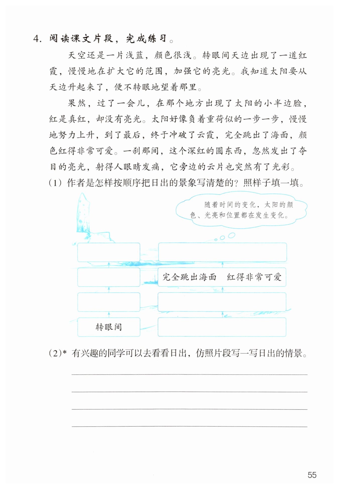 天邊的朝霞紅紅的,像少女臉上的紅暈。太陽(yáng)慢慢升起,像挑著