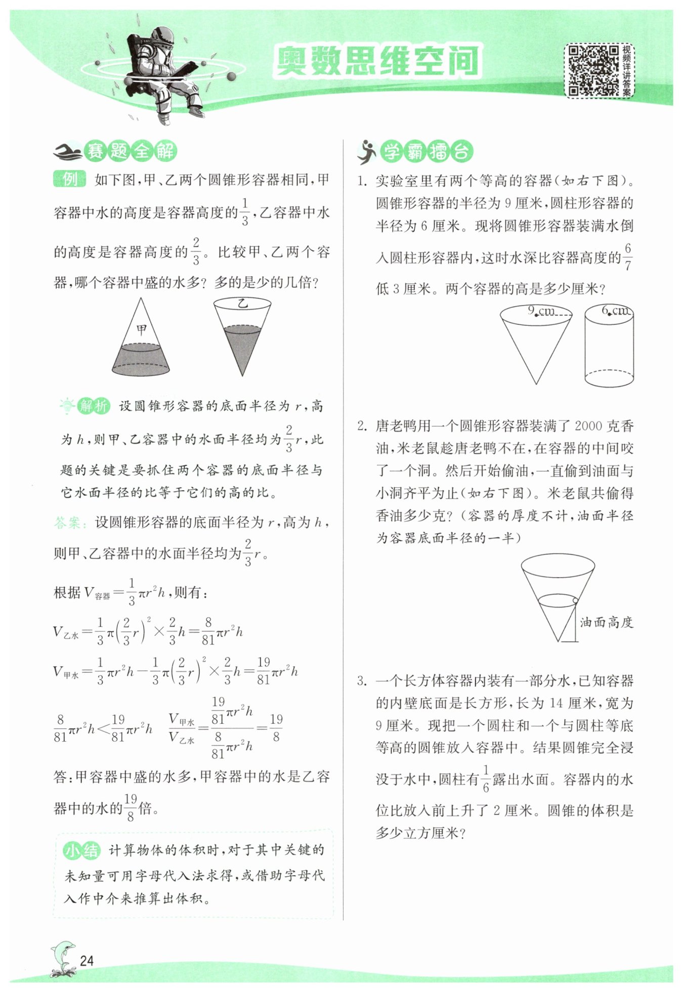 $解:設(shè)圓錐形容器的底面半徑為2r,高為2h,則中間的底面半徑為r,高為h。\ $