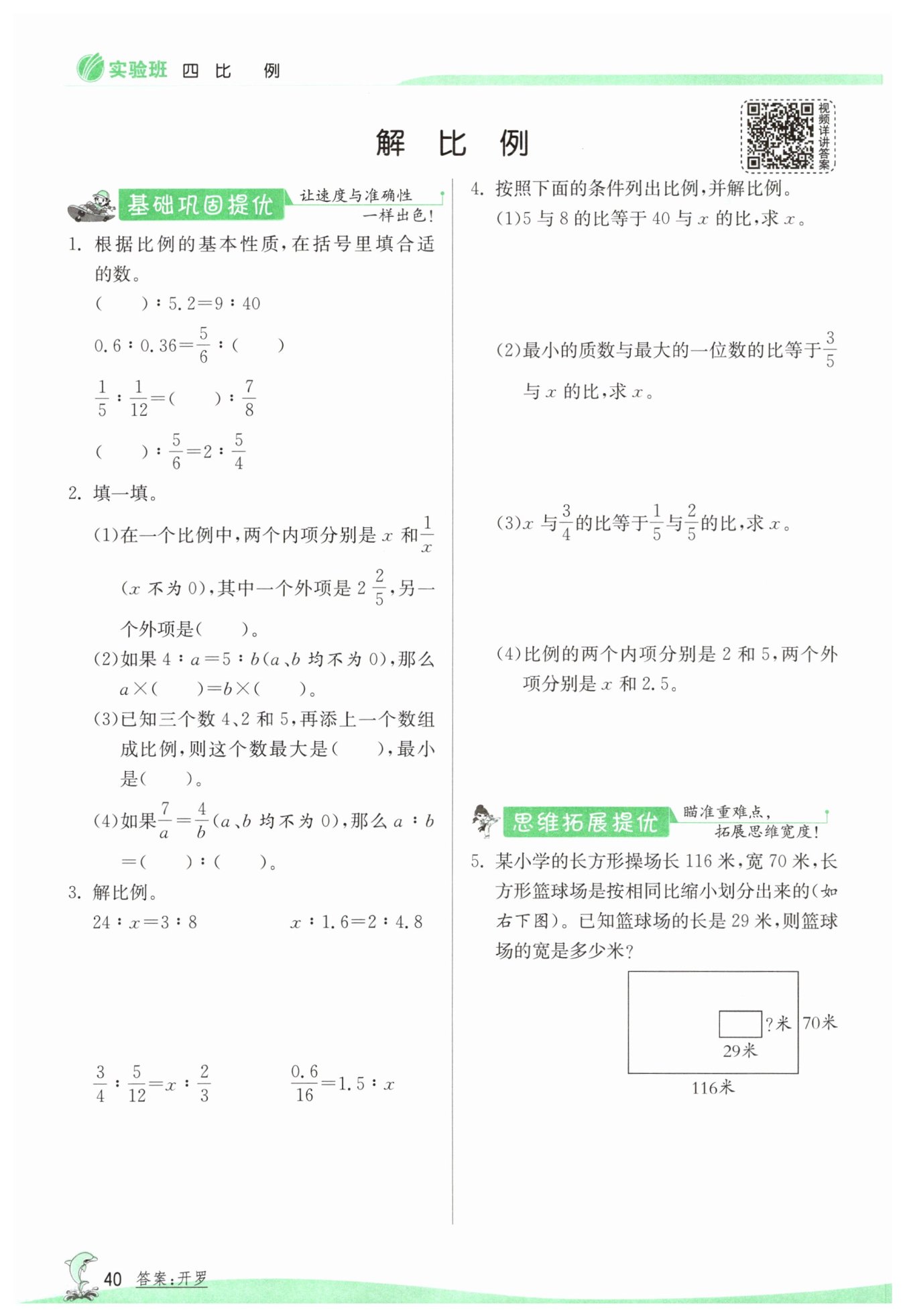 $ \begin{aligned} 解:x: 2&=5:2.5 \\ 或2.5: 2&=5:x \\ x&=4 \\ \end{aligned}$