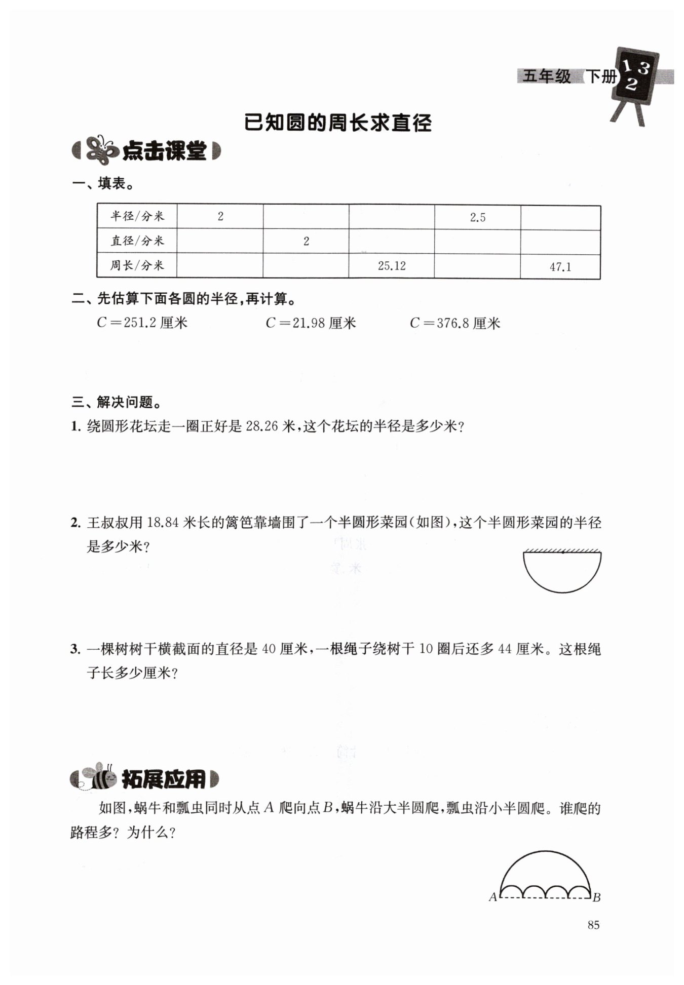答:爬的路程一樣多,因?yàn)樾“雸A的直徑加起來(lái)等于大半圓的直徑,