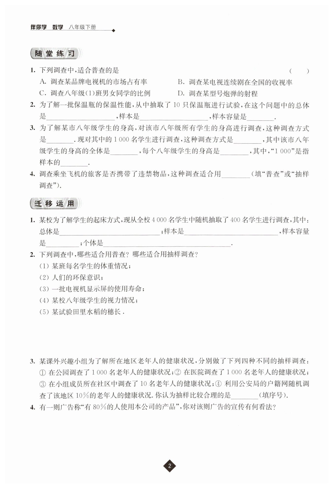 解:(1)普查(2) 抽樣調(diào)查(3) 抽樣調(diào)查(4) 抽樣調(diào)查(5) 抽樣調(diào)查
