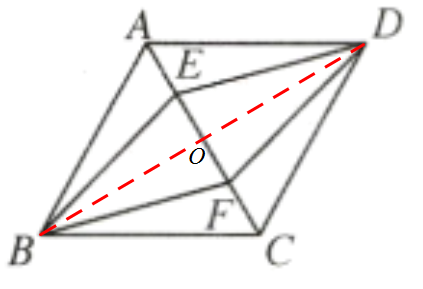 當(dāng)旋轉(zhuǎn)角?$∠AOF = 45°,$?四邊形?$BEDF $?是菱形