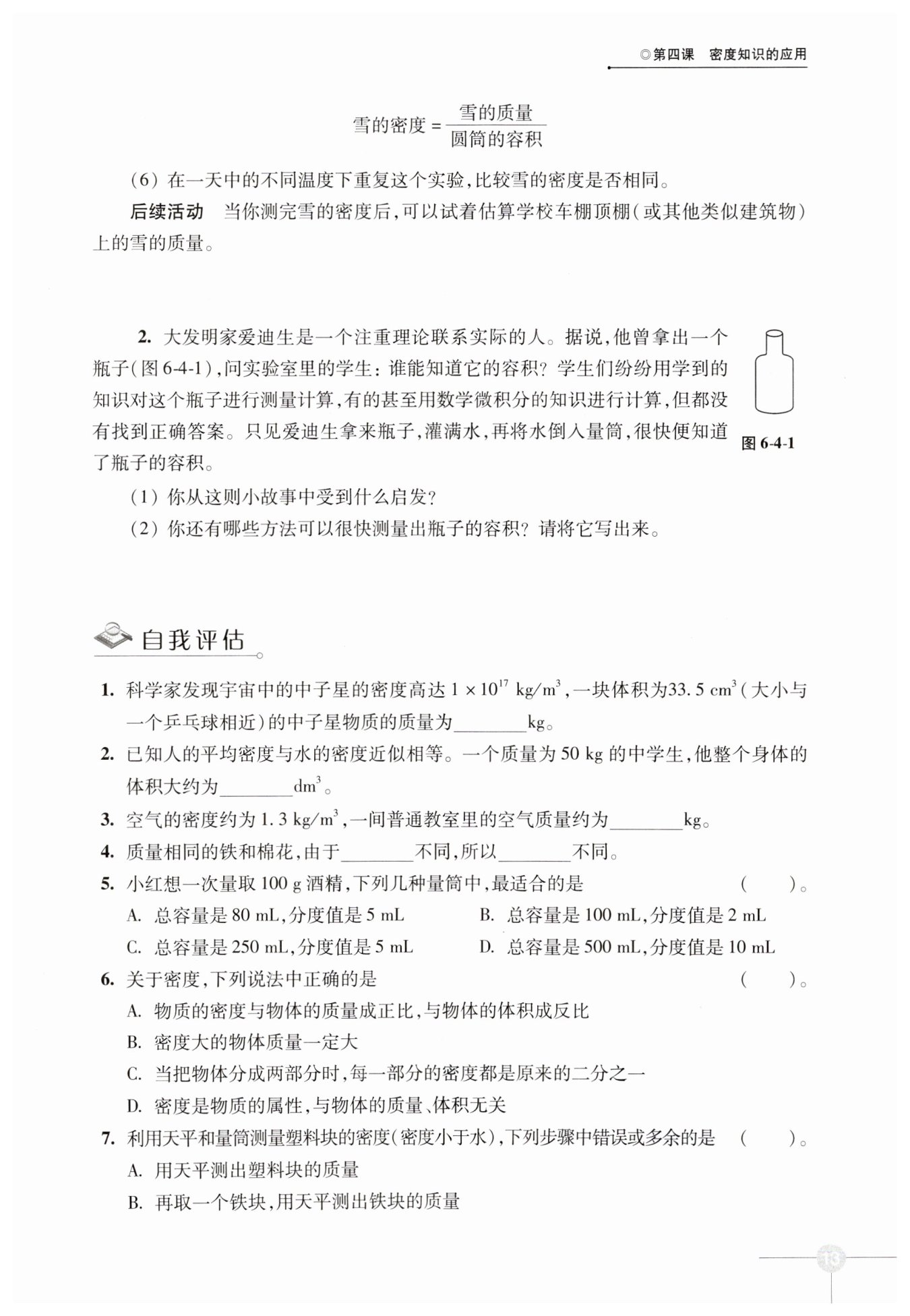 $ (2)先測出空器皿 的質(zhì)量m_1 ,再測出裝滿水的器皿的質(zhì)量m_2,容積即為水的體積\frac {m_2-m_1}{ρ_水}$