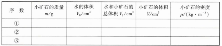 $用細(xì)線系住小礦石,將其浸沒在量筒的水中,記下體積V_{1}$