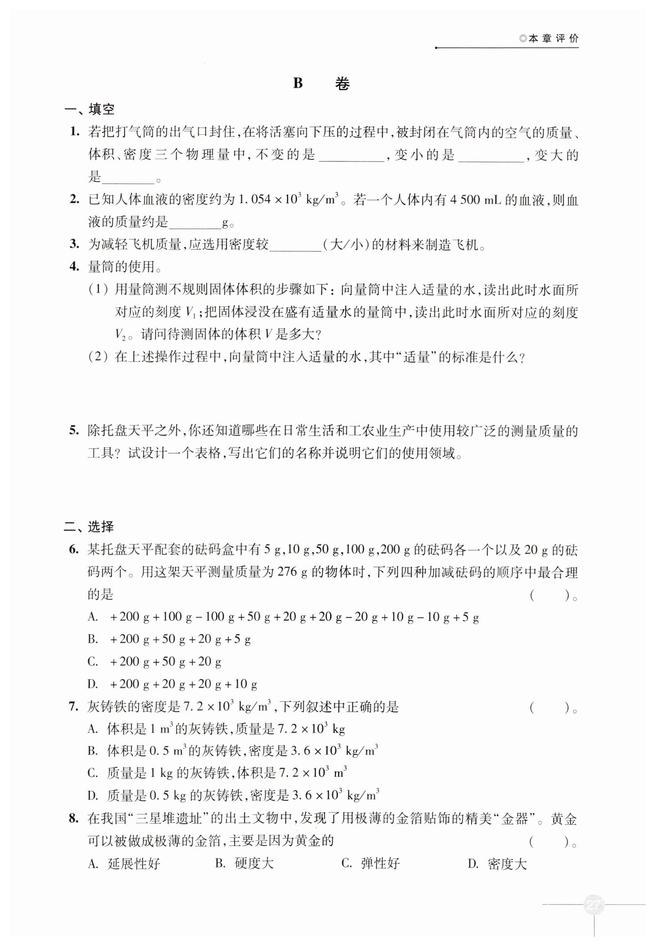 $ (2)注入量筒內(nèi)的水至少能浸沒待測固體,且待測固體浸沒在水中后,液面位置應低于量筒$