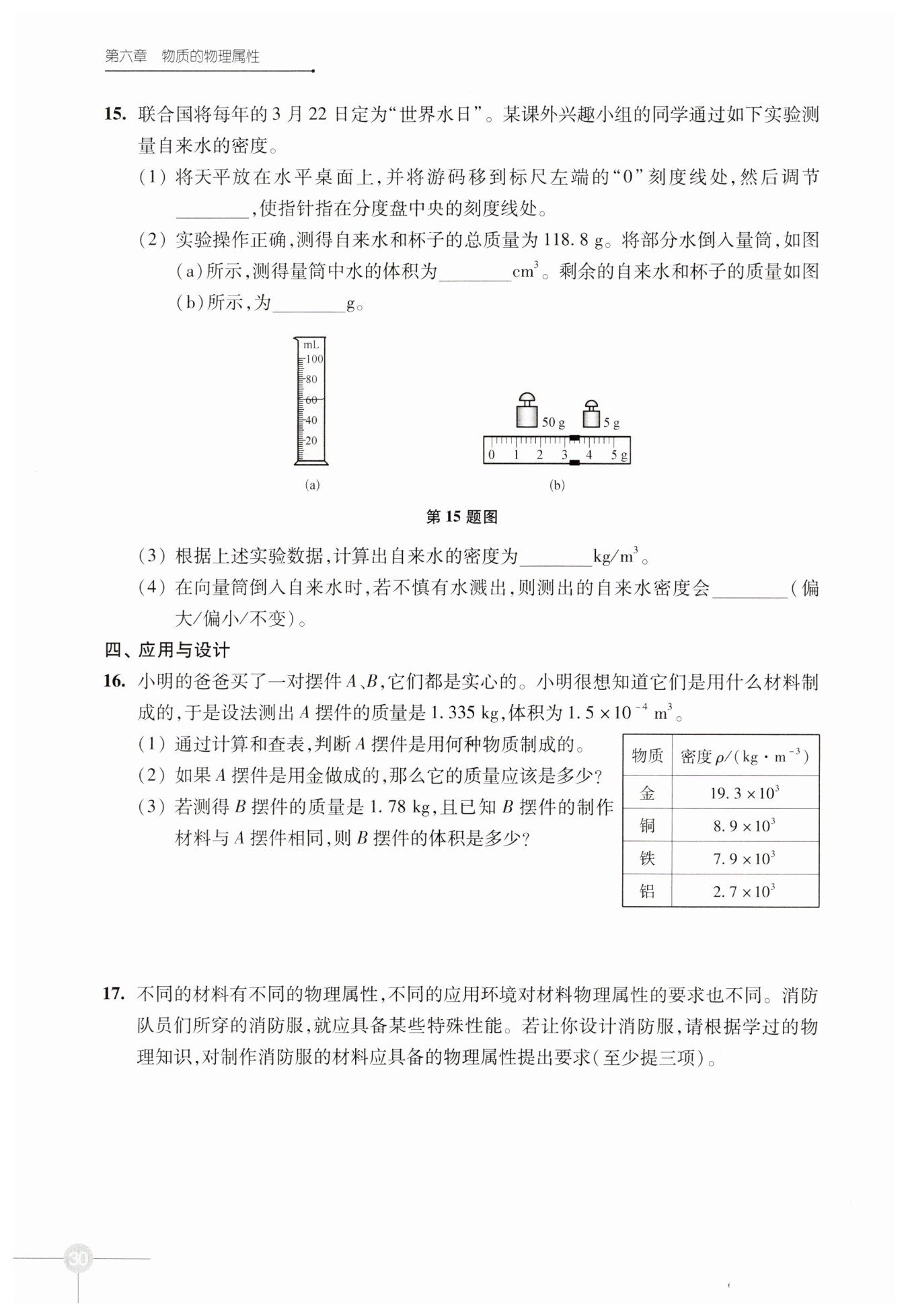 $ 解:(1)ρ=\frac {m }{V}=\frac {1.335\ \text {kg}}{ 1.5×10^{-4}\ \text {m}^3}=8.9×10^{3}\ \text {kg/m}^3 $