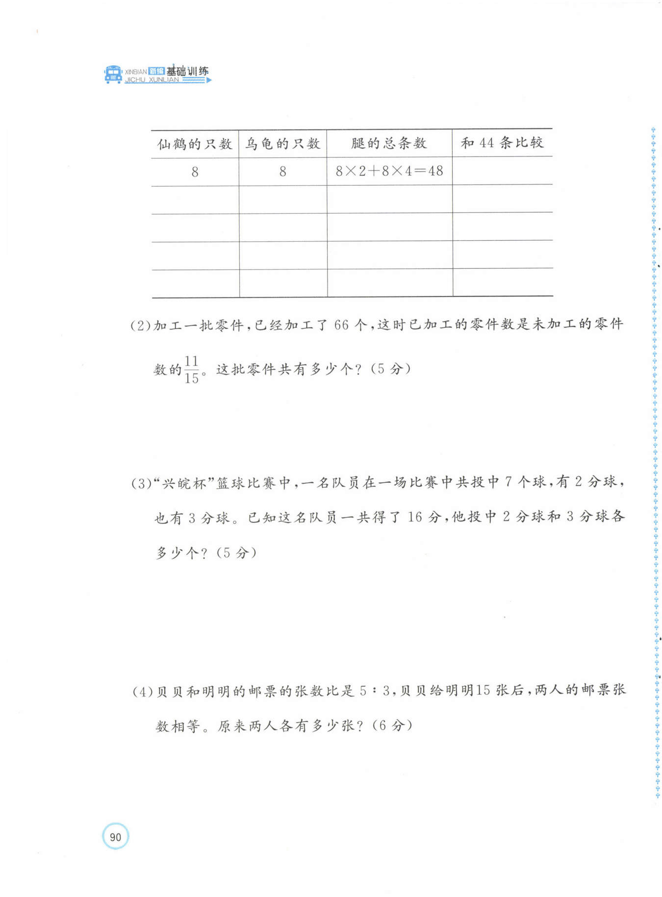 答:他投中2分球5個(gè),3分球2個(gè)。