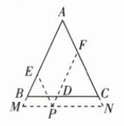 $解:如圖,過點(diǎn)P作MN//BC分別交AB、AC的延長(zhǎng)線于M、N兩點(diǎn).\ $