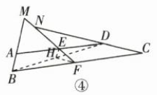 $問題三:如圖④,連接BD,取BD的中點H,連接EH、HF,$