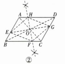 $解:畫法:如圖②,連接AC、BD交于點(diǎn)O,連接OE,延長(zhǎng)EO交CD于點(diǎn)G,作線段EG的垂直平分線交AD于點(diǎn)H,交BC于點(diǎn)F,連接EH、GH、EF、FG,四邊形EFGH即為所求作的菱形EFGH.\ $