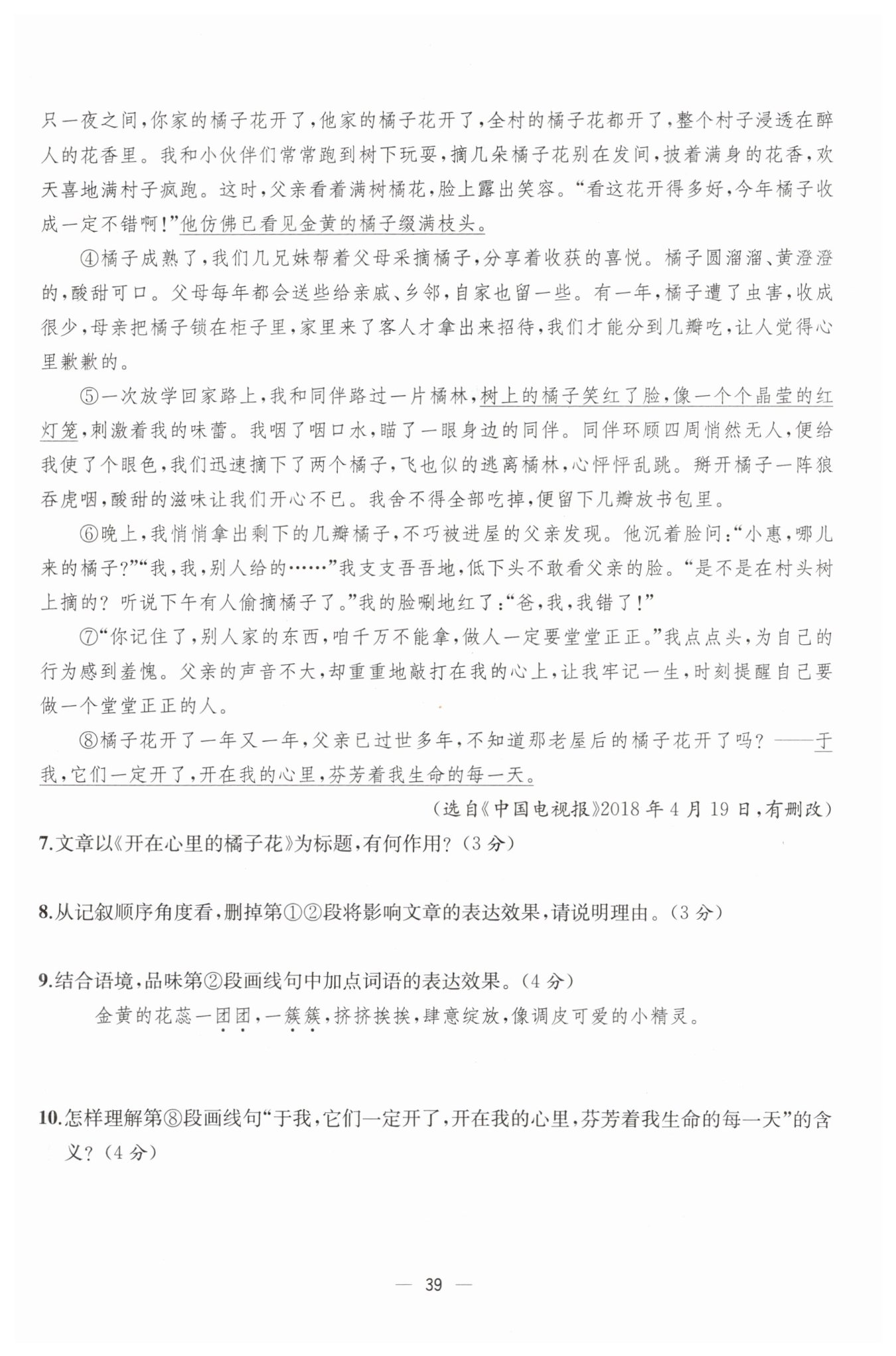 ①對于“我”來說,橘子花的香味使“我”想起了父親的教導,它一直留在“我”的心中影響著