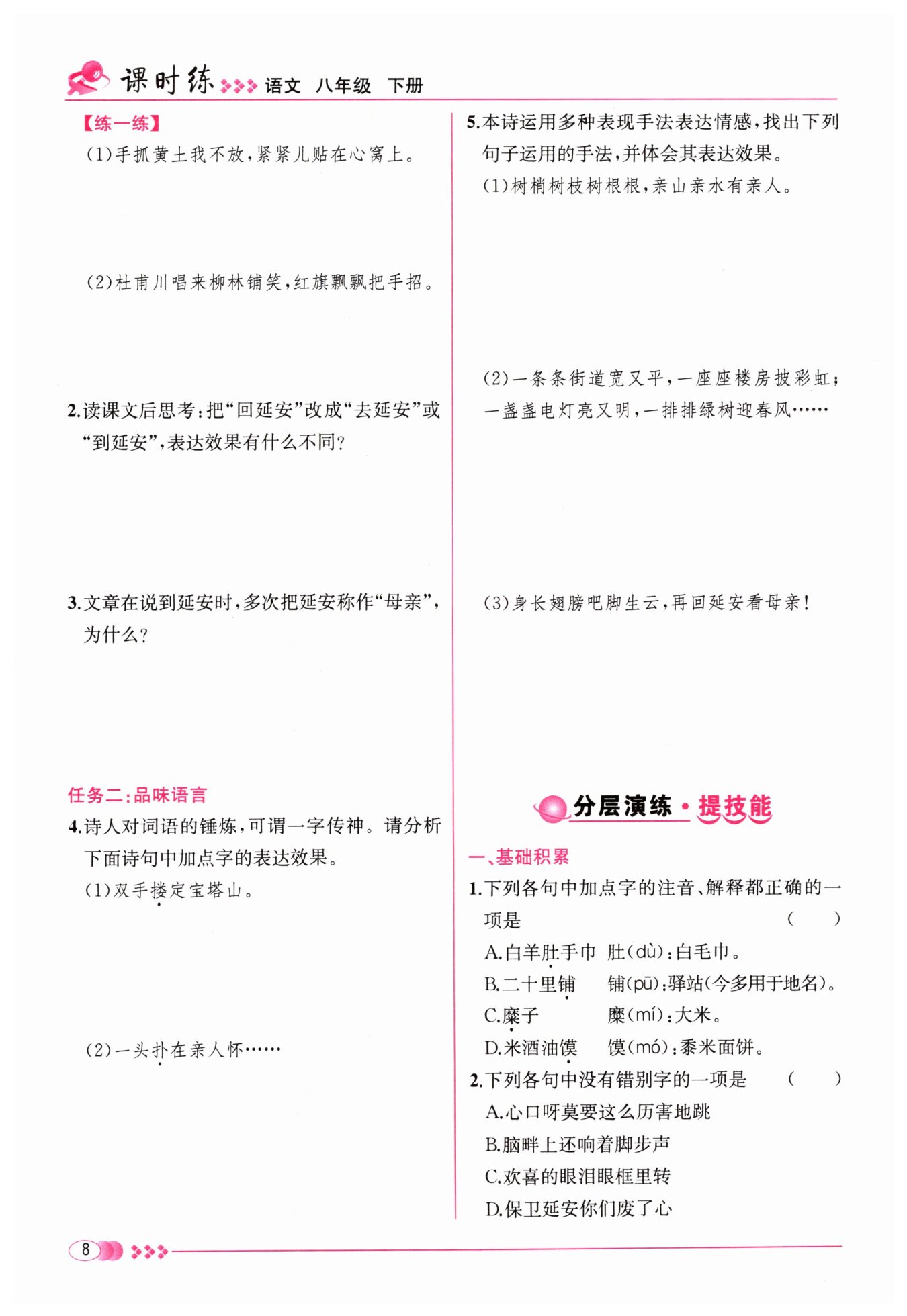表達(dá)了詩人對延安的眷戀、熱愛之情。