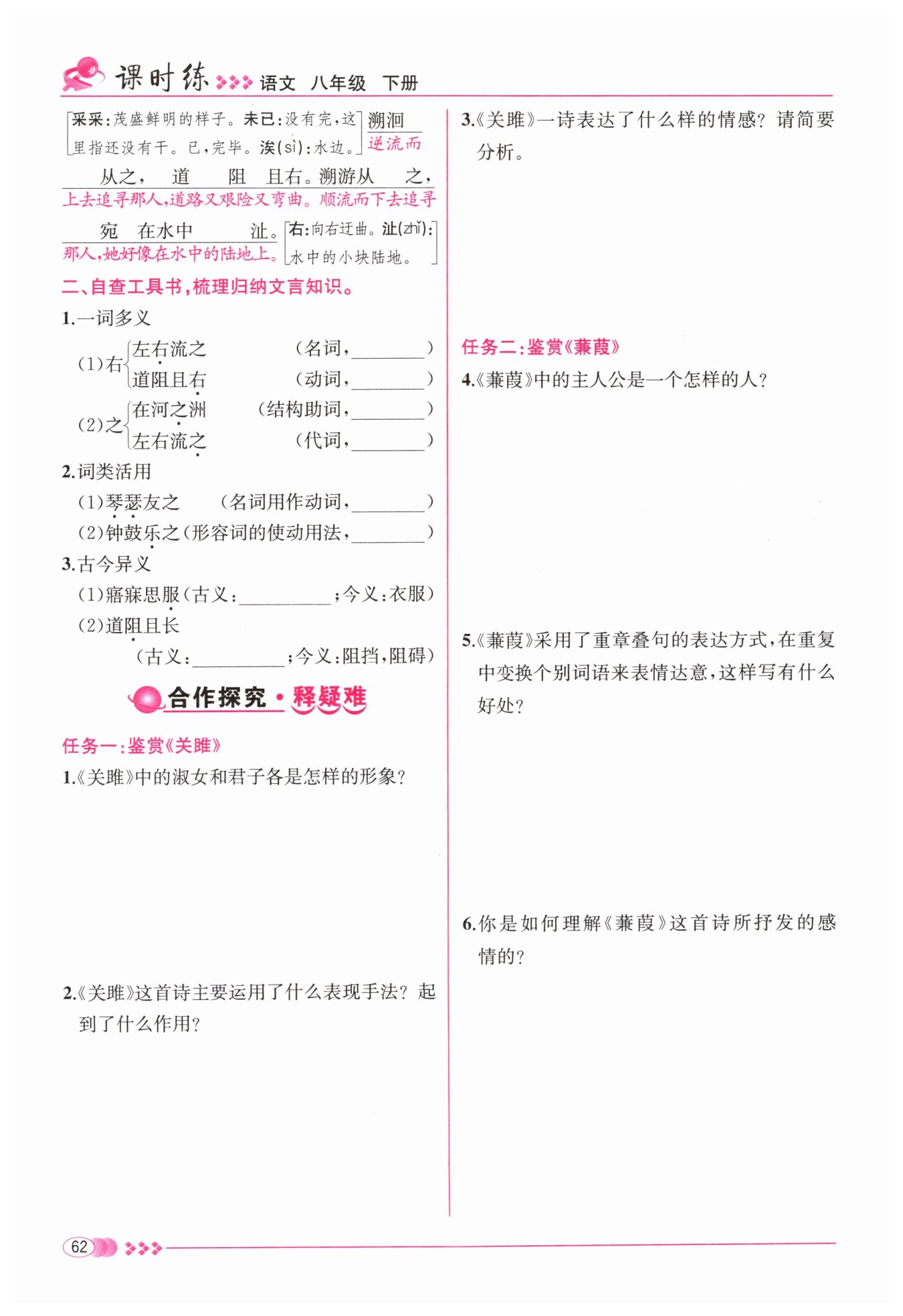 $《蒹葭》全詩采用重章疊句形式更顯韻味悠$