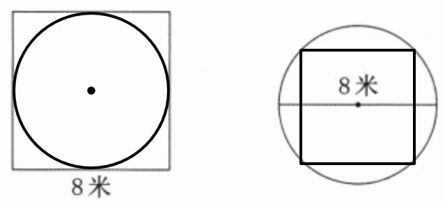 正方形:8×(8÷2)÷2×2=32(平方米)