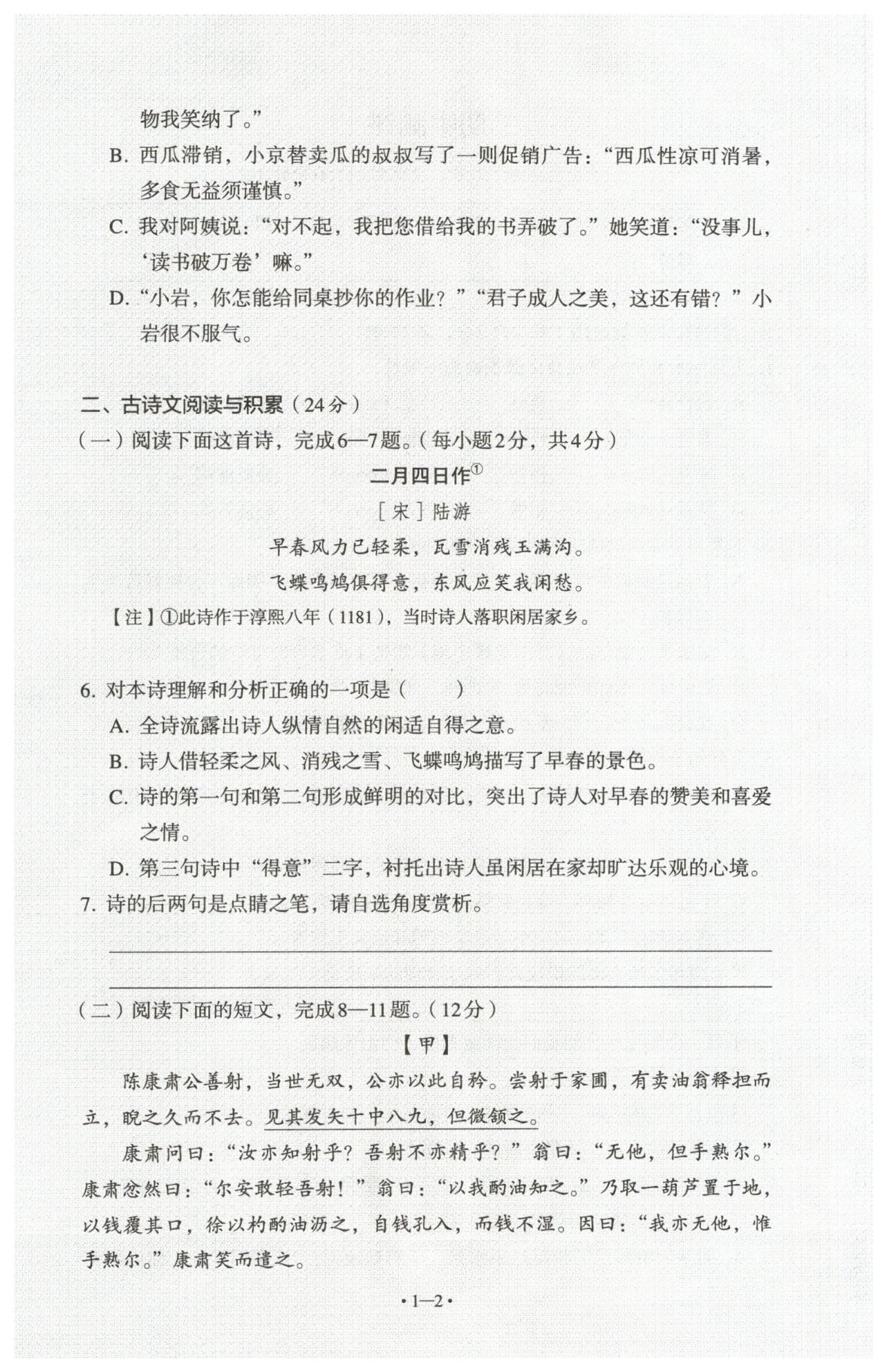 示例二: 運用襯托的寫法, 以“飛蝶鳴鳩”的“得意”,反襯此時詩人心中的失意苦悶。