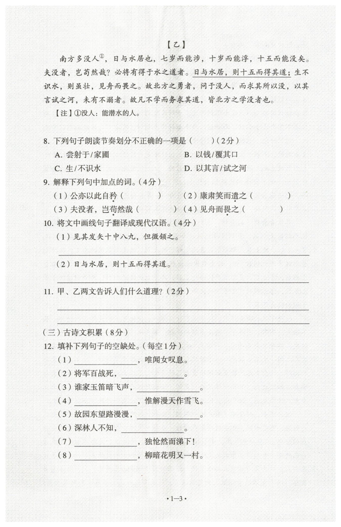(賣油翁)看到他每十箭射中八九箭,只是對他微微點(diǎn)頭。