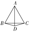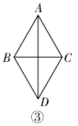 $解:符合條件的圖形有$ $如圖①,AB=AC=AD=BC,BD=CD$ $該圖形對稱 軸有1 條$ $如圖②,AB=AC,DA=DB=DC=BC$ $該圖形對稱軸有1條$ $如圖③,AB=AC=DB=DC=BC≠AD$ $該圖形的對稱軸有2條$ $如圖④,AB=AC=BD,AD=BC=CD$ $該圖形的對稱軸有1 條$