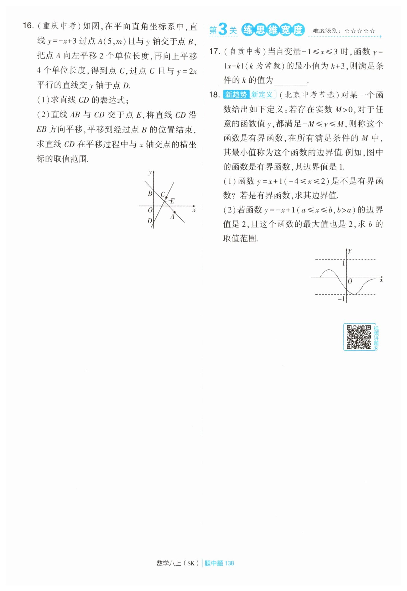 $解:(1) 把 A(5,m)代入 y=-x+3$