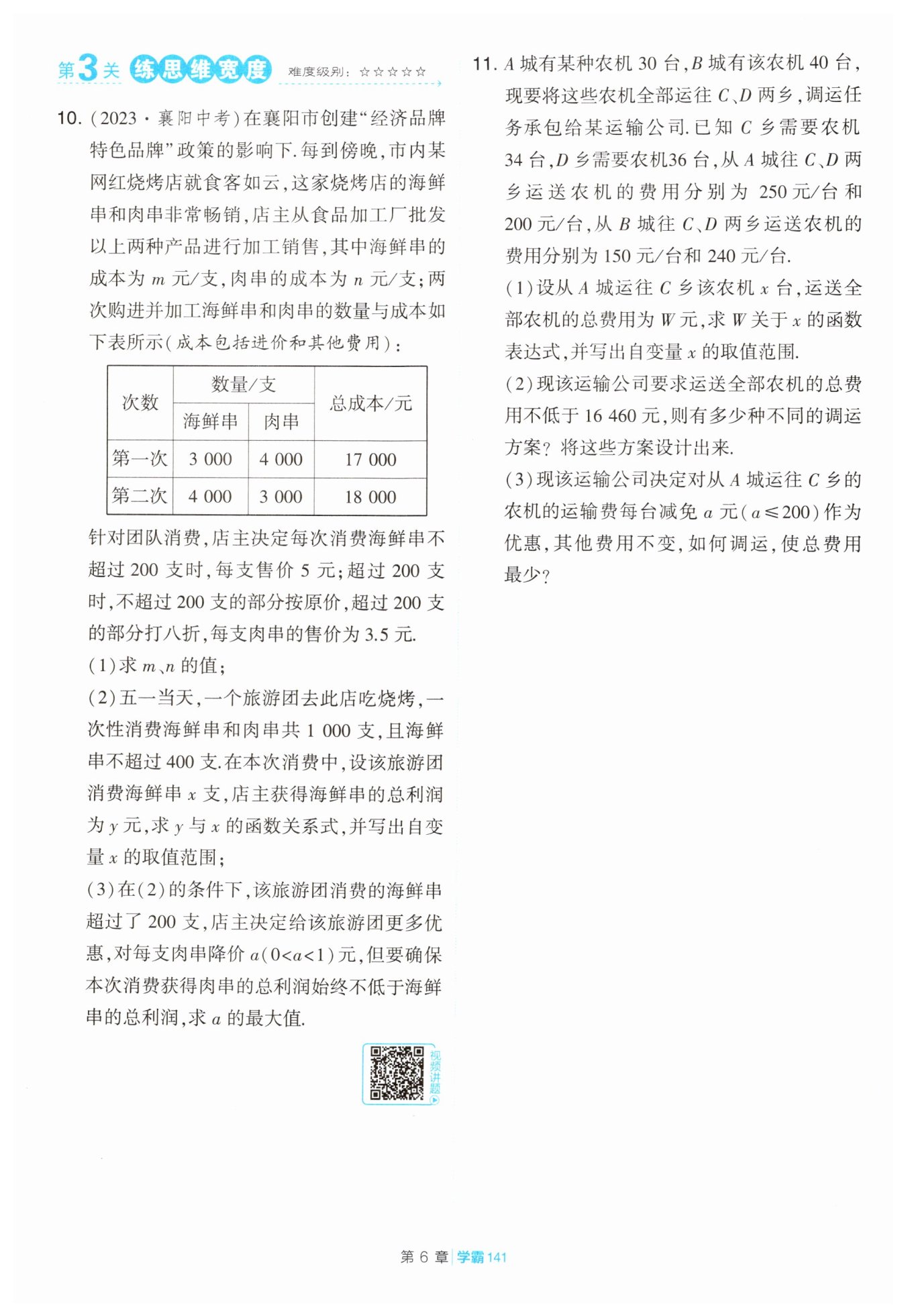 $則從 A 城運(yùn)往 D 鄉(xiāng)農(nóng) 機(jī)(30-x) 臺(tái),$