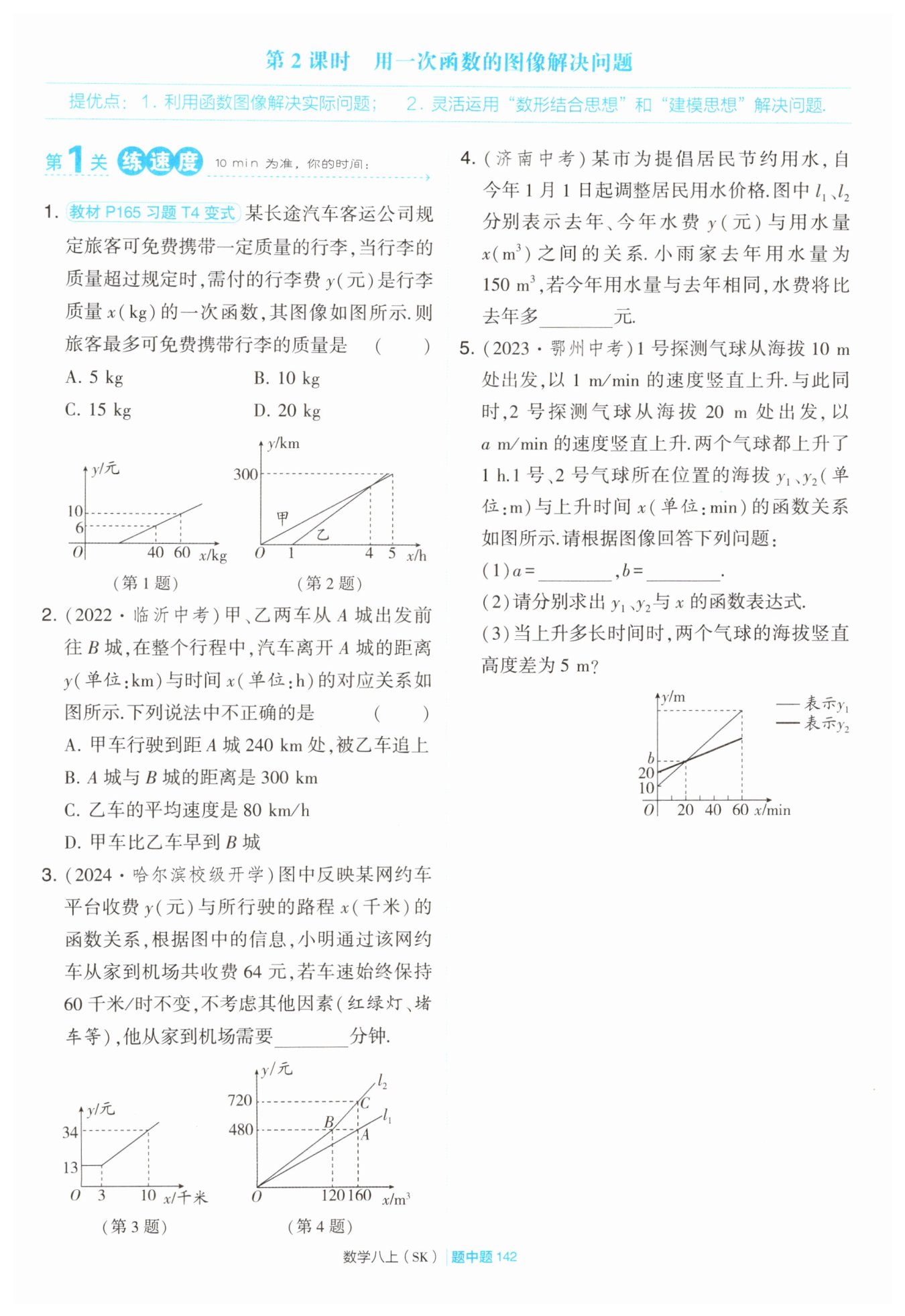 $解:(2)1號探測氣球所在位置的海拔y_{1}=10+x,$