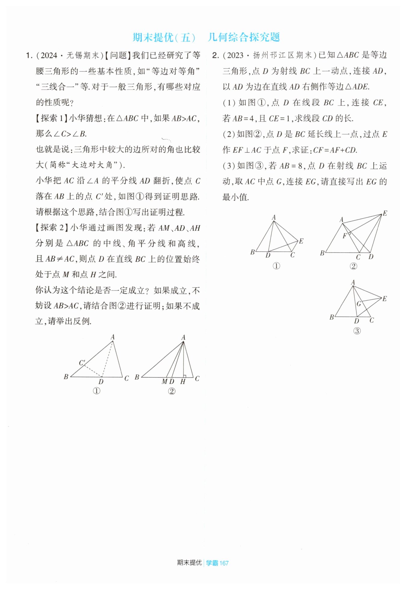 $解:[探索1]如圖①,作△ABC的角平分線AD,$