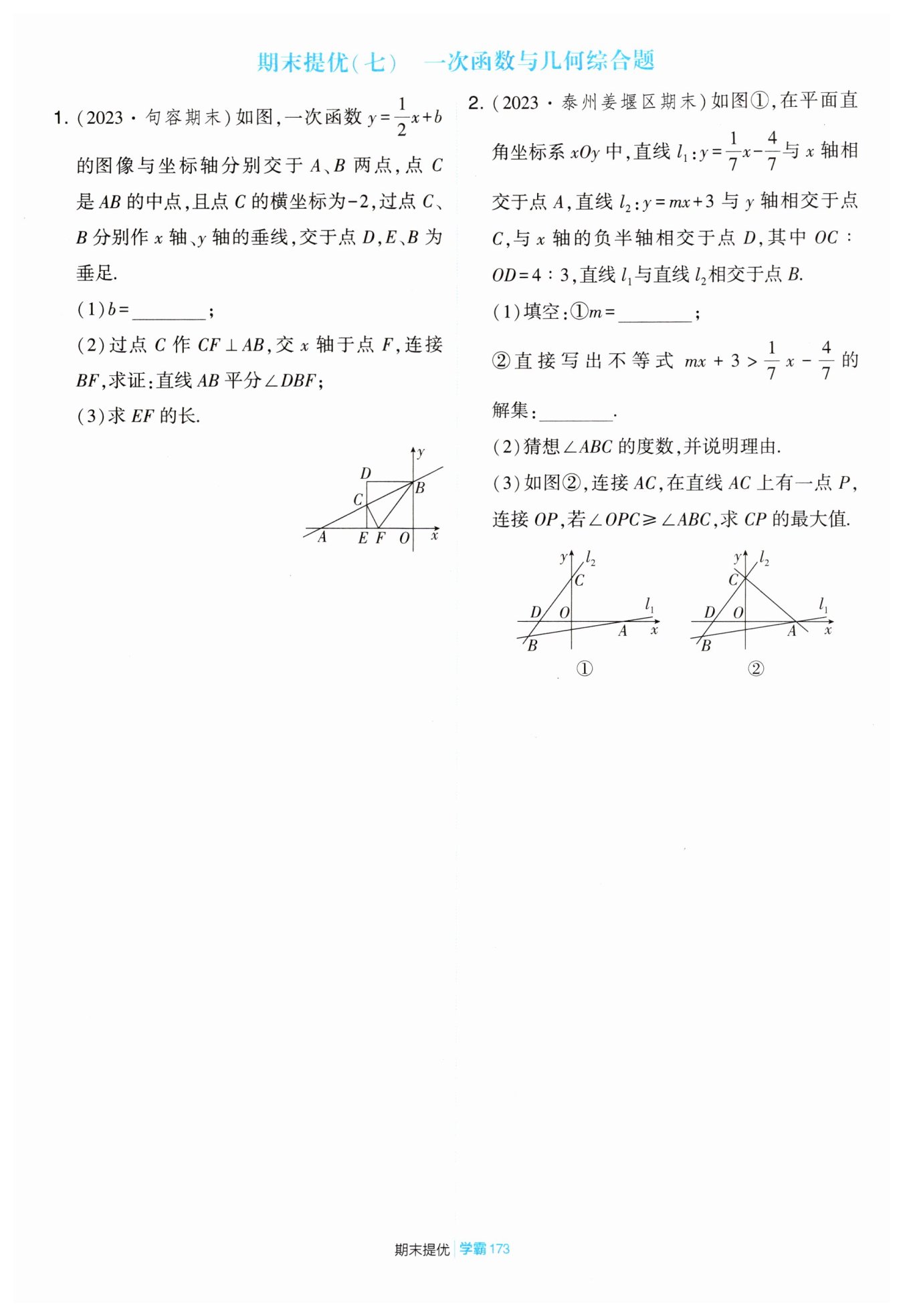 $聯(lián)立方程組\begin{cases}y=\frac 17x\\y=-\frac 34x+3\end{cases}$