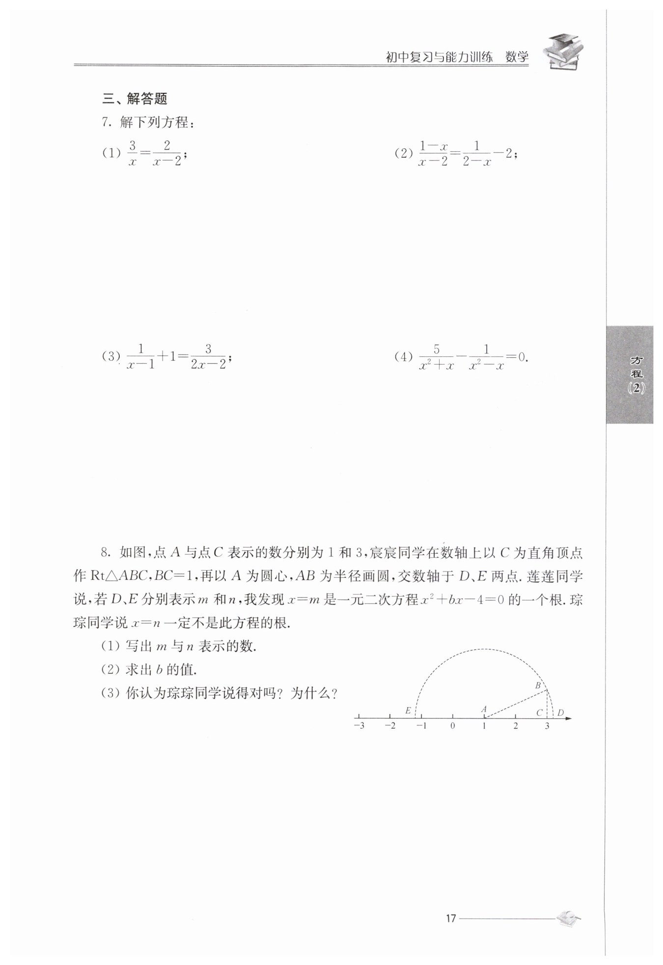 $解得x=1±\sqrt{5},所以琮琮說得不對(duì),x=n是此方程$