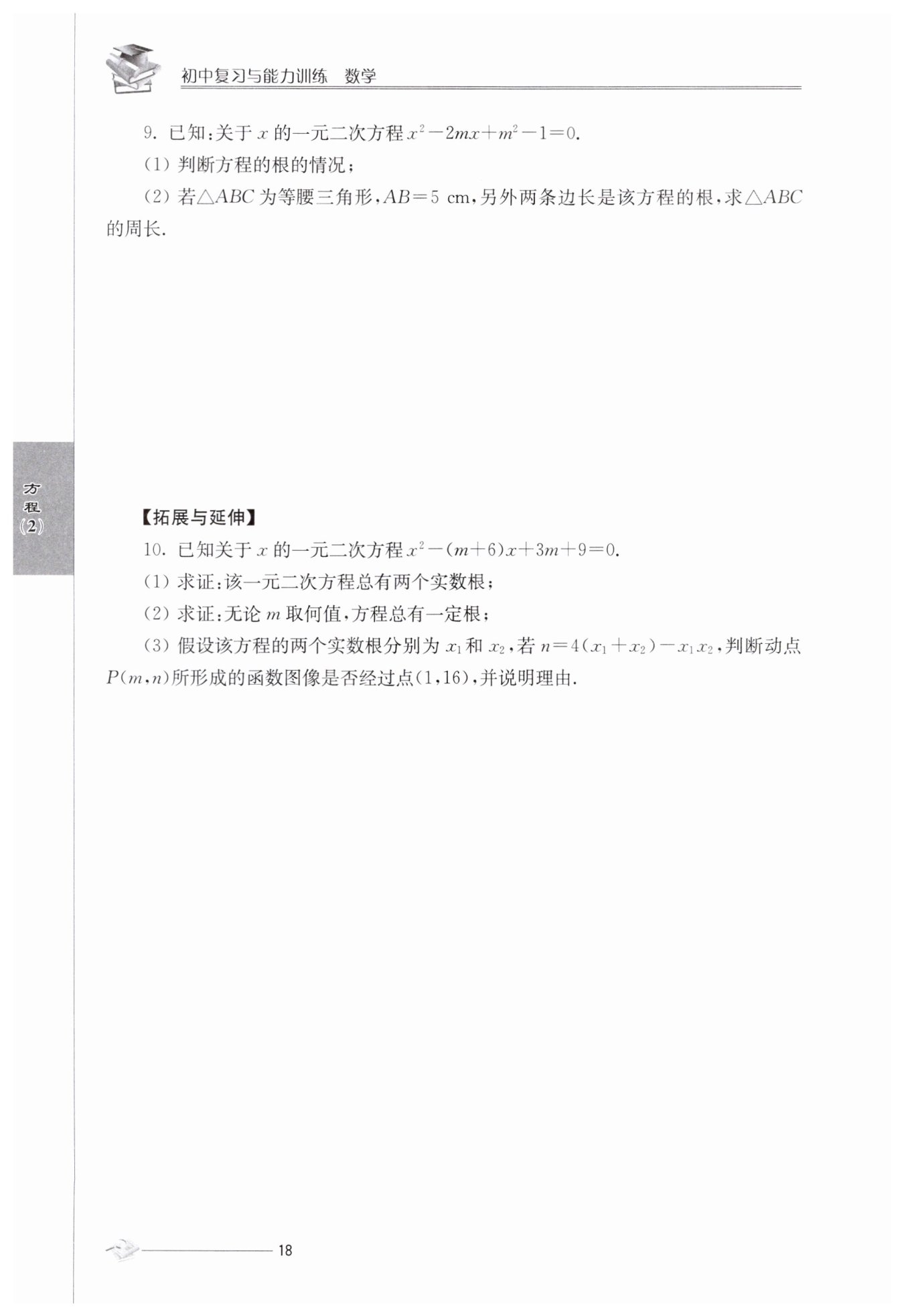 $(2)該一元二次方程的根為\frac {(m+6)±\sqrt{m^2}}{2}$