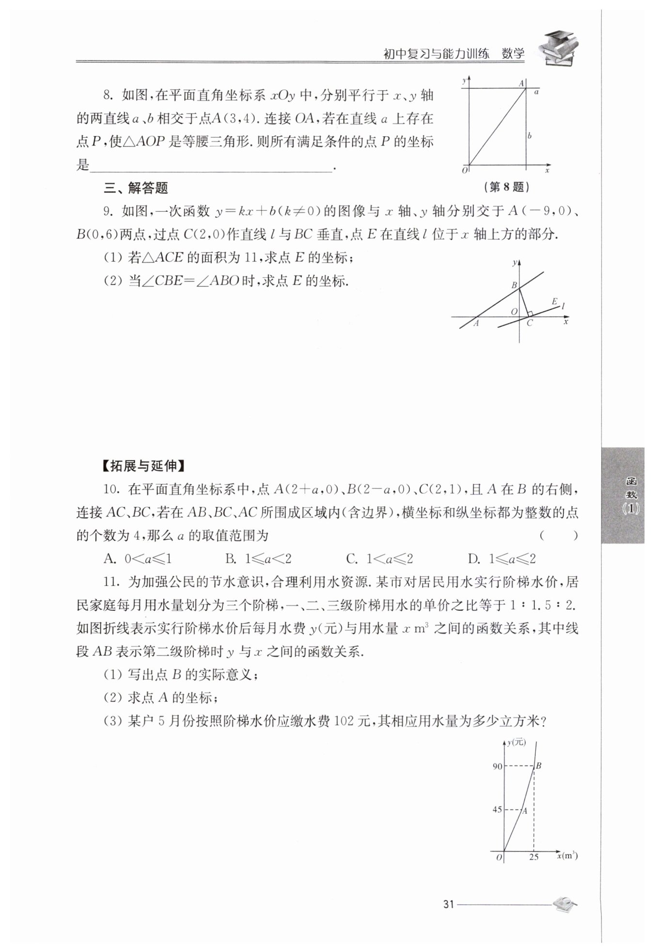 $為6元/m^3則根據(jù)題意得90+6(y-25)=102$