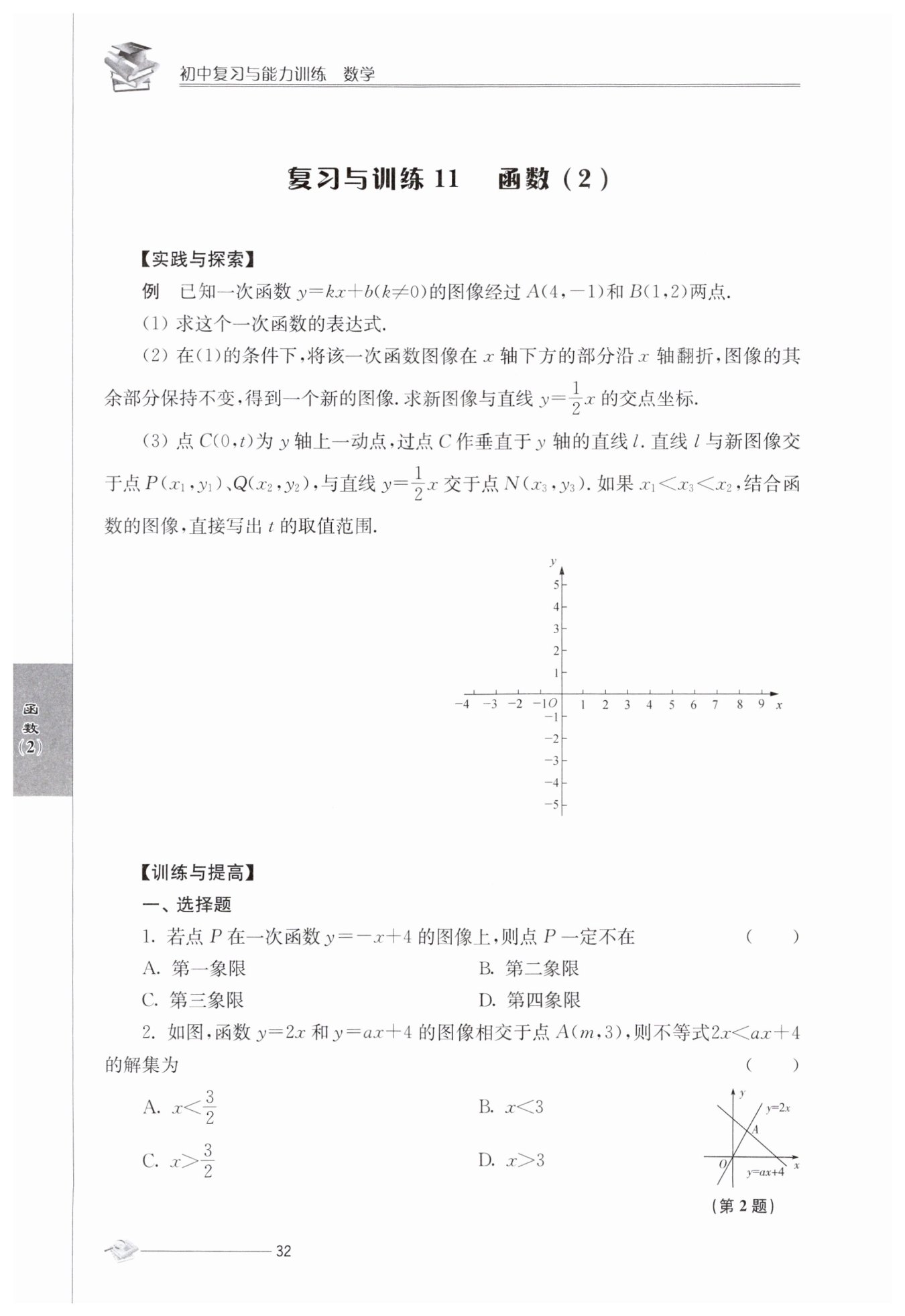 $(2)解:新函數(shù)為 y=\begin{cases}{ -x+3(x≤3)\ }\ \\ { x-3(x>3) } \end{cases}$