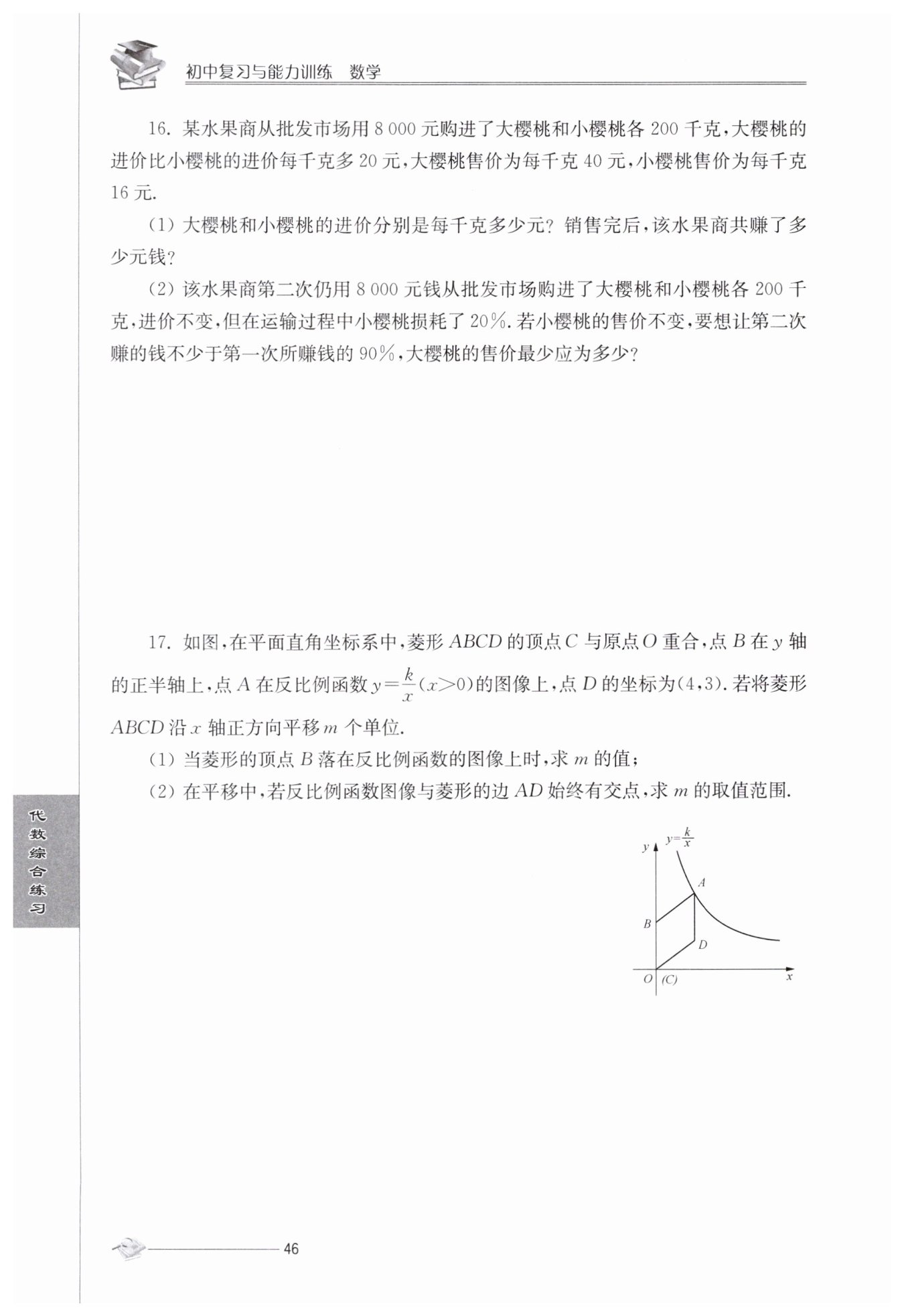 $答:大櫻桃的售價最少應(yīng)為41.6元/千克$