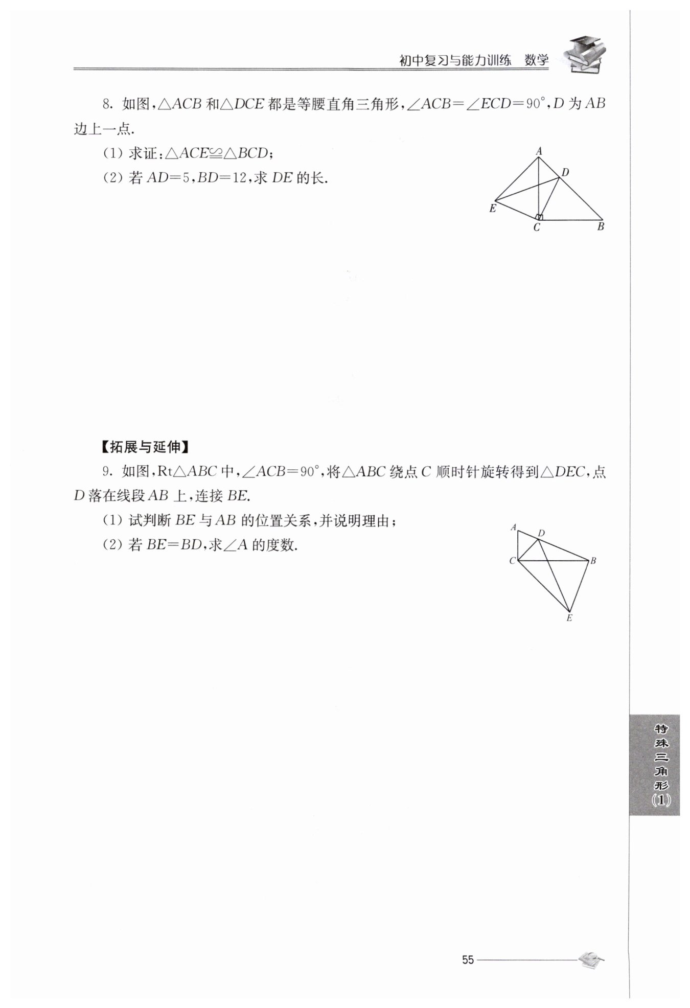 $腰直角三角形,∠ACB=∠ECD=90°$