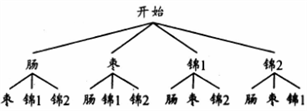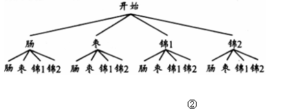 $ 解:(1)樹形圖如圖①:∴P(吃到兩只粽子都是什錦餡)=\frac {2}{12}=\frac16$
