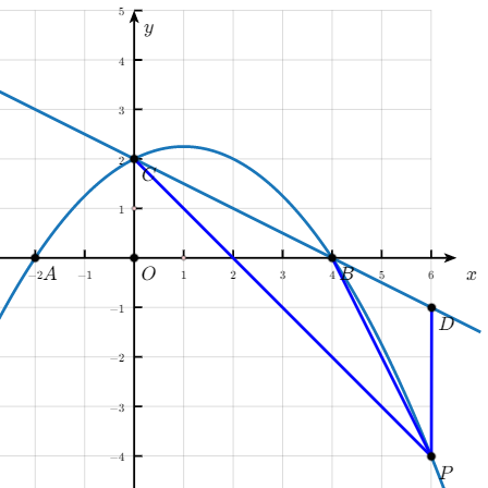 $設(shè)P(m,-\frac14m^2+\frac12m+2)$