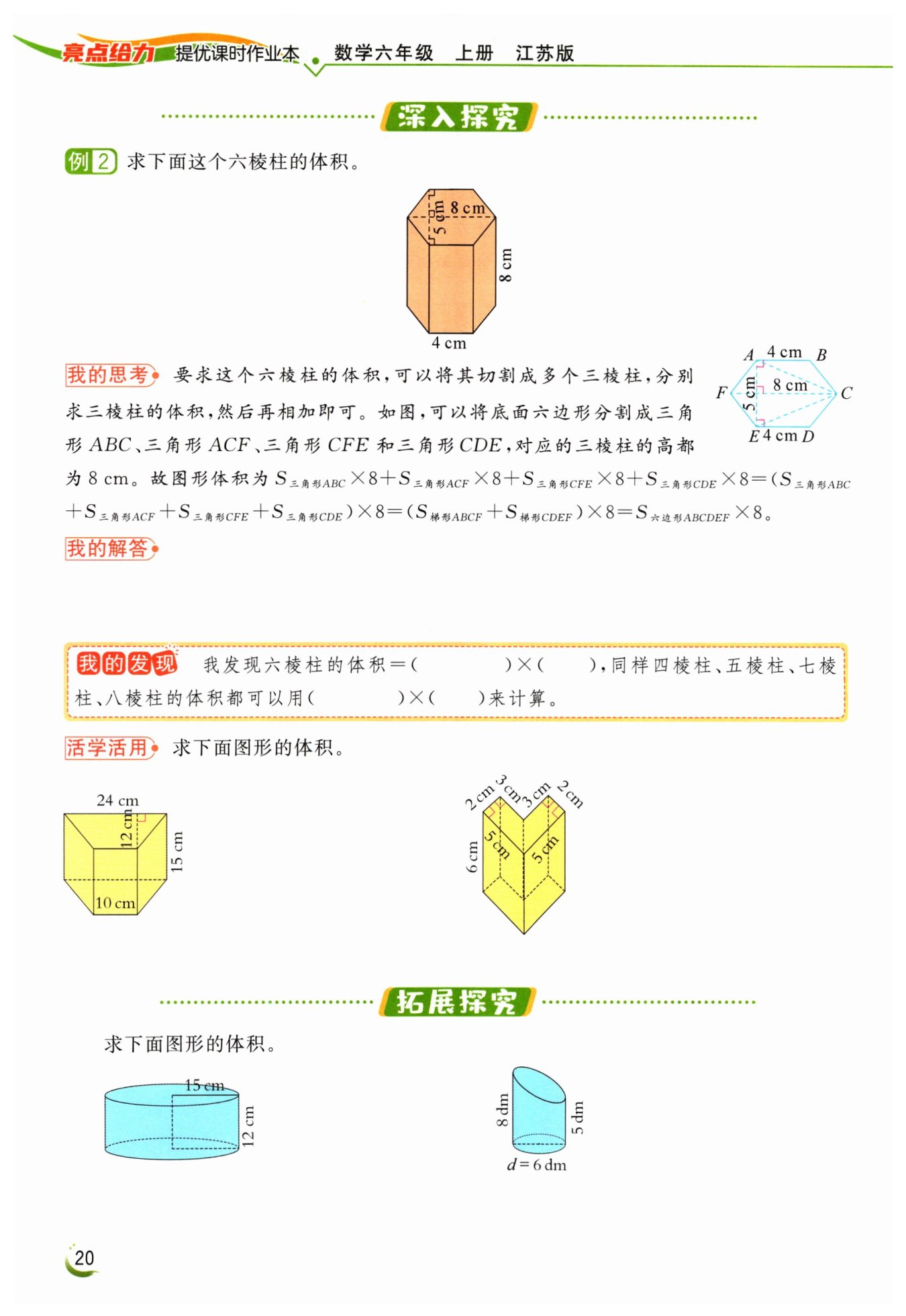 $答:這個六棱柱的體積是240\ \mathrm {cm}3。$
