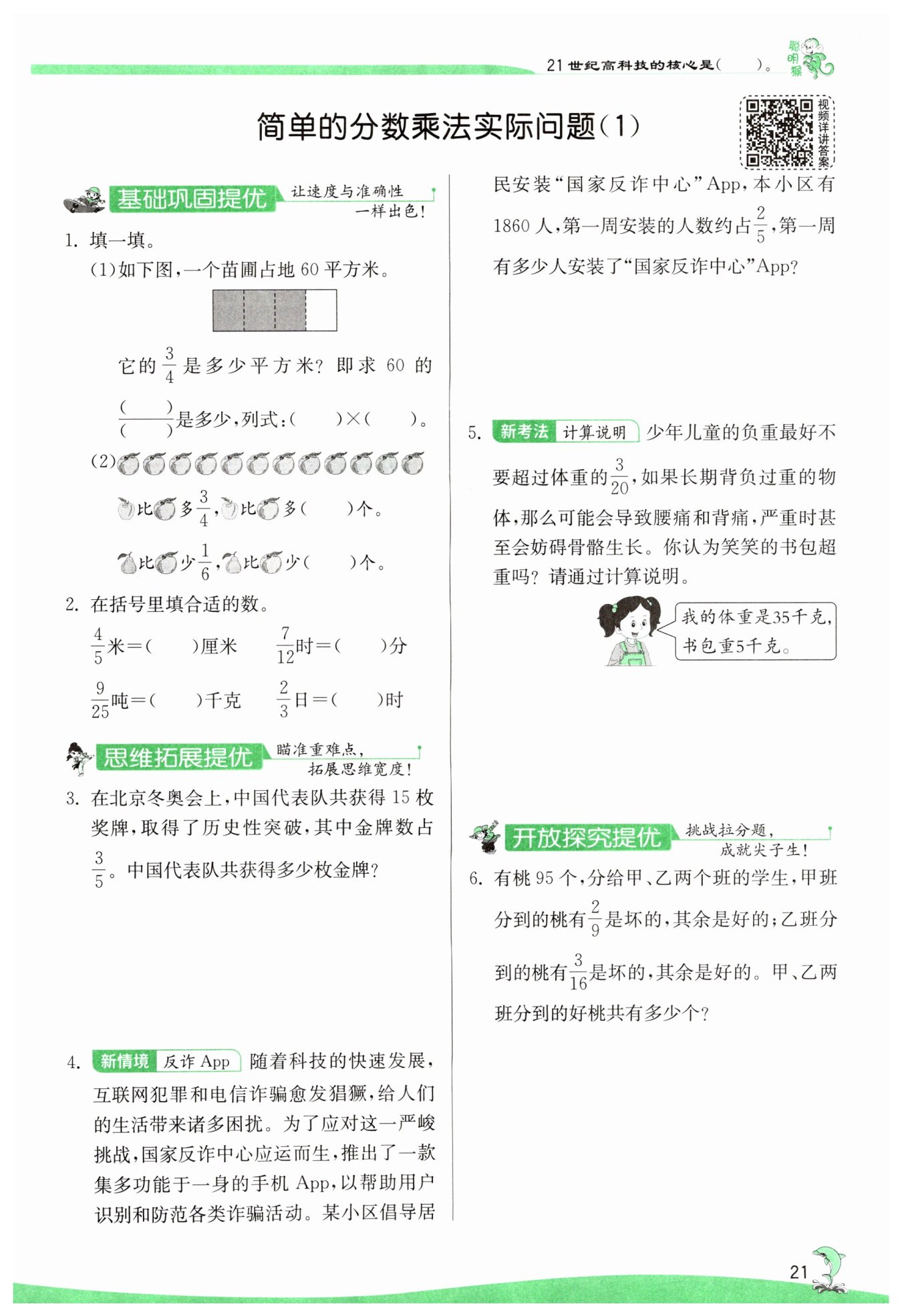 $35×\frac{3}{20}=\frac{21}{4}(千克)\ $