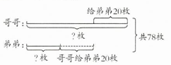$弟弟:(78-20×2)÷2=19(枚)\ $
