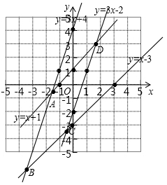 $聯(lián)立方程組 \left\{ \begin{array}{l}{y=3x-2} \\ {y=x-3} \end{array} \right.$