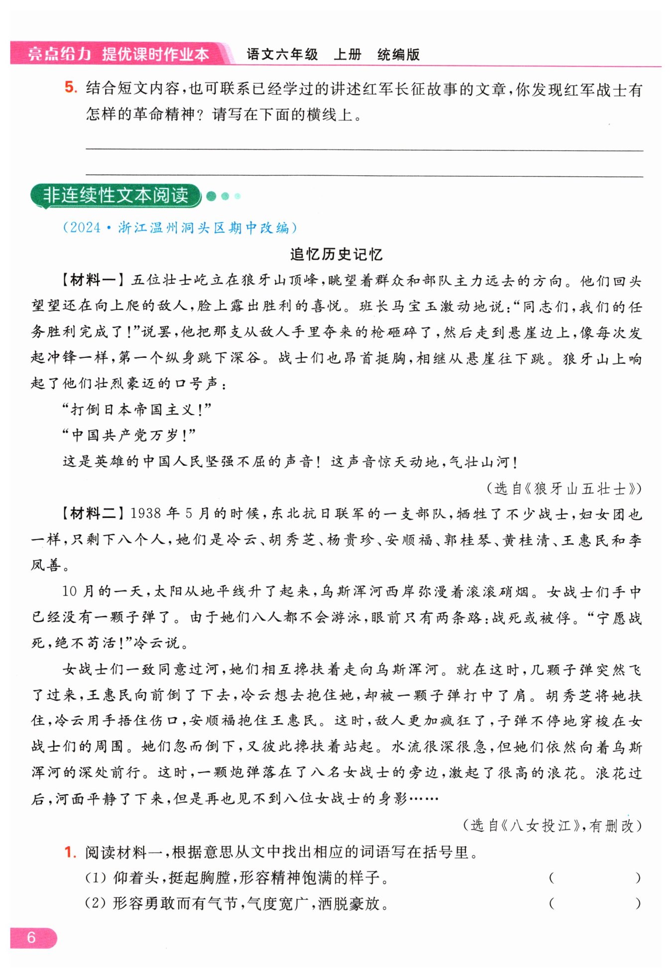 示例:不怕犧牲,前仆后繼的獻身精神;勇往直前、英勇奮斗的大無畏精神;眾志