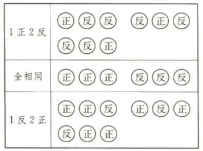 3枚硬幣正面全朝上或反面全朝上的可能性最