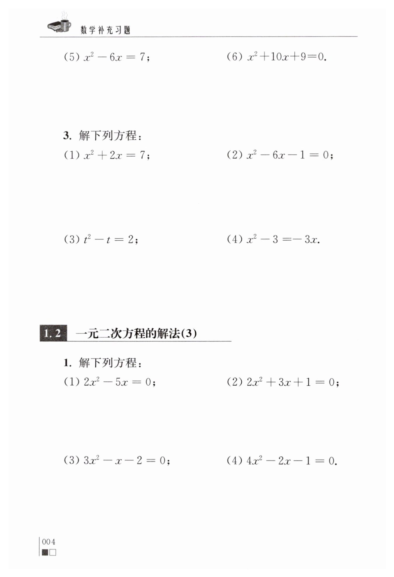 解: $t2-t+\frac{1}{4}=\frac{9}{4}$ $(t-\frac{1}{2})2=\frac{9}{4}$ $t-\frac{1}{2}=±\frac{3}{2}$ ${t}_{1}=2,{t}_{2}=-1$