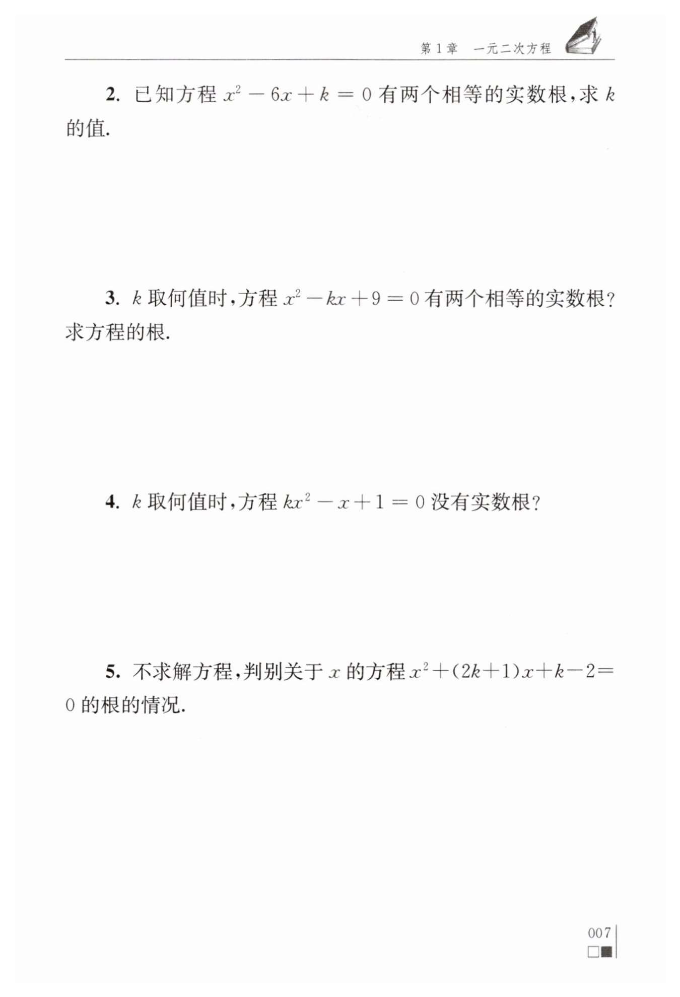 解:因為△= (2k+1)2-4(k-2)= 4k2+9