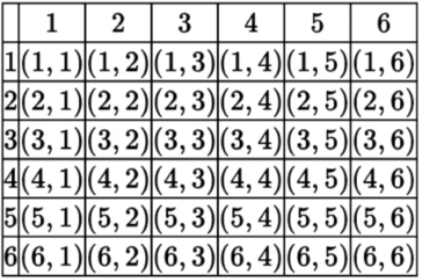 要想自己獲勝的概率比他們大,必須滿足兩枚骰子點(diǎn)數(shù)和出現(xiàn)的結(jié)果多于5