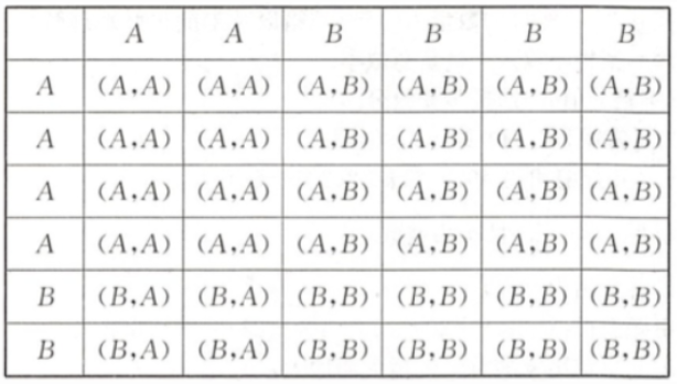 共有36種等可能的結(jié)果,其中字母相同的有16種,則甲獲勝的概率為 $P=\frac {16}{36}=\frac49 $