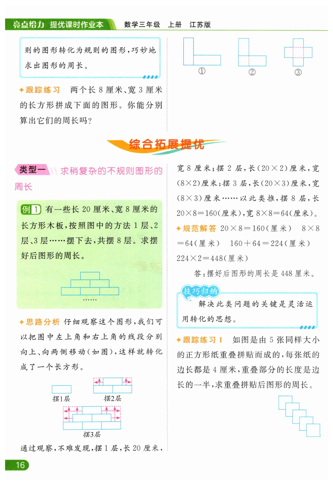 答:重疊拼貼后圖形的周長(zhǎng)是