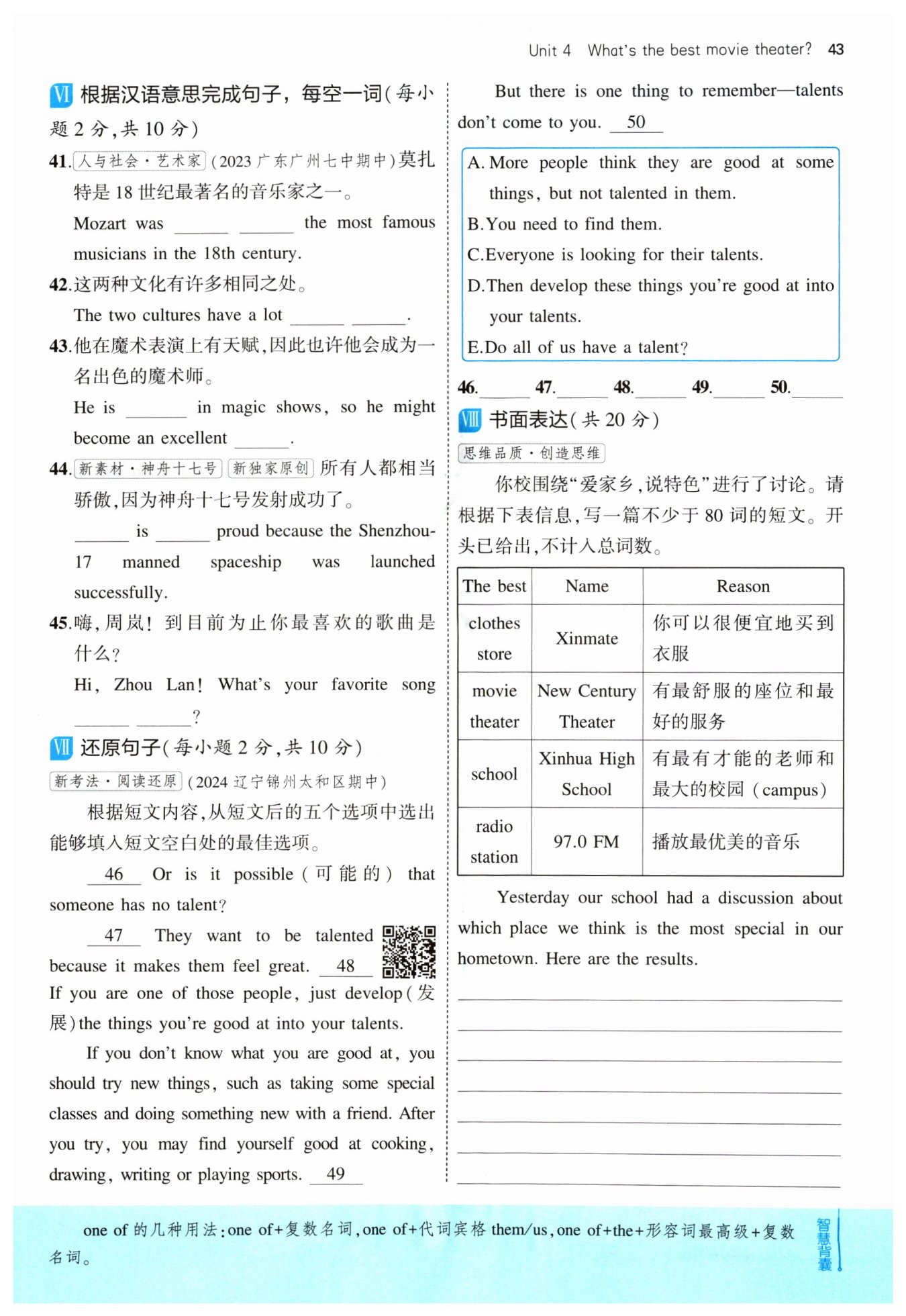 The best clothes store is Xinmate. You can buy clothes very cheaply there. The best movie theater is New Century Theater. It has the most comfortable seats and the best service. The best school is Xinhua High School. It has the biggest campus and the most talented teachers. The best radio station is 97.0 FM, because it plays the most beautiful songs.